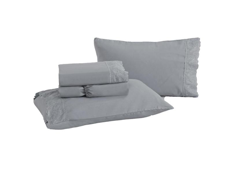 Jogo de Cama Queen Bordado Inglês Rozac Golden Cinza (2 Lençois e 2 Fronha)
