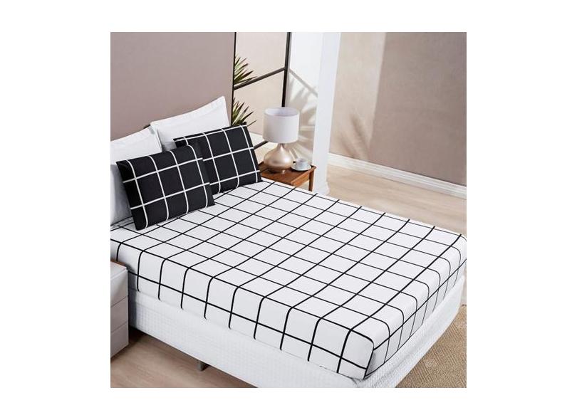 Jogo De Cama Queen Dupla Face Grid Micro Percal 200 Fios Austin 3 Pçs