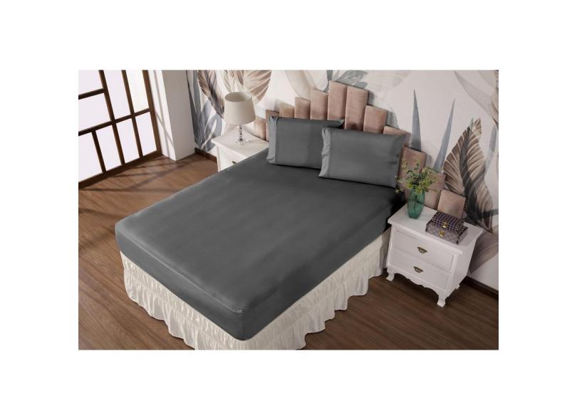 Jogo de Cama Queen Lençol + Fronhas Malha Gel Prático Liso 3 pç Cinza