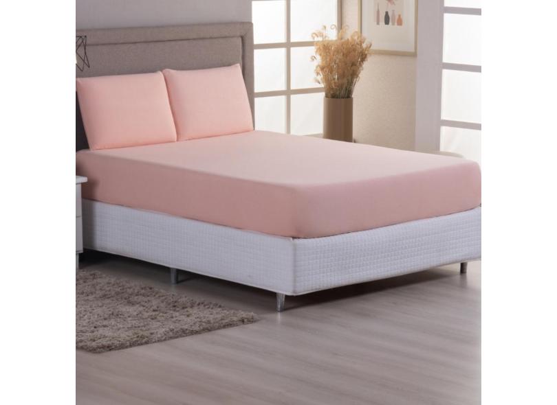 Jogo de Cama Queen Malha 100% Algodão c/ Elastico 04 Pçs Salmão