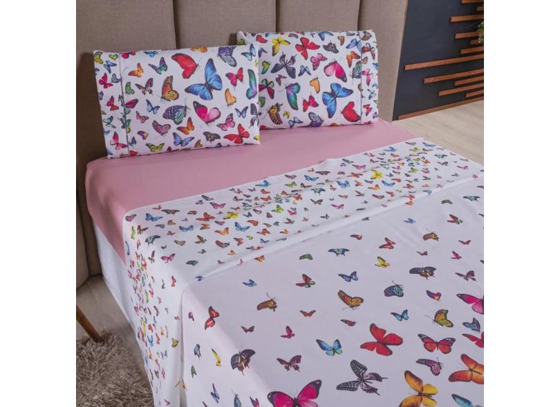 Jogo de Cama Refúgio Queen Percal 100% Algodão Luxo 4 Peças Borboletas
