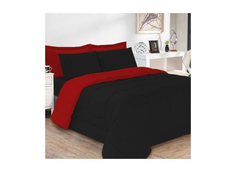 Jogo De Cama Soft Conforto Casal Queen Preto E Vermelho Casa Dona