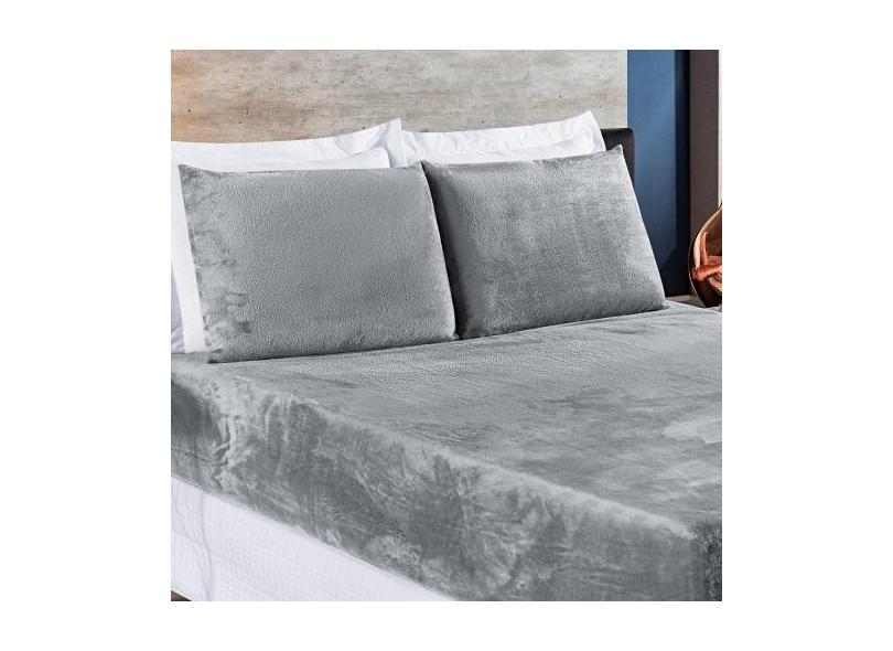 Jogo De Cama Solteiro Biasoft Manta Flannel 2 Peças - Cinza - Bia Enx