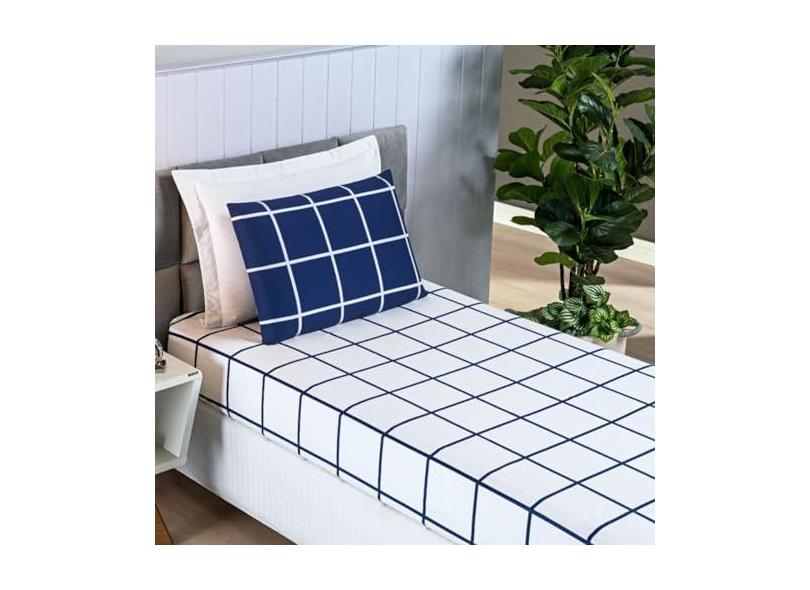 Jogo De Cama Solteiro Grid Micro Percal 200 Fios Austin 2 Pçs Marinho