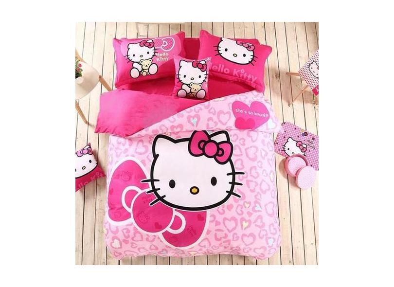 Jogo De Cama Solteiro King Infantil Hello Kitty 4 Peças - Casa Da Fama