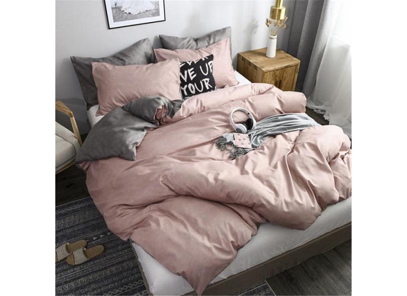 Jogo De Cama Solteiro King Rosé Com Cinza 7 Peças Edredom
