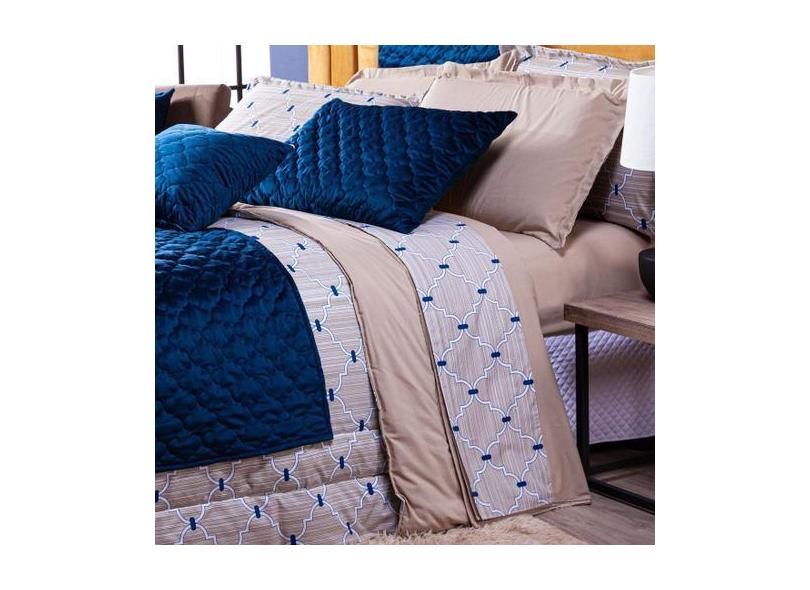 Jogo De Cama Veneza Bege Queen 04 Peças - Percal 200 Fios - Dourados E