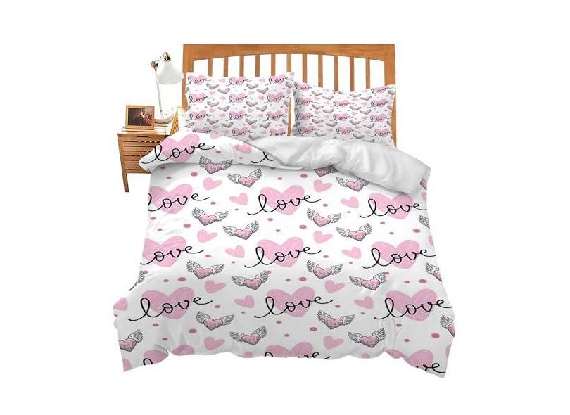 Jogo de edredom com tema de amor, coração, decoração de quarto, solteiro, macio, casal, queen size, capa de edredom com 2 fronhas para crianças, adolescentes, adultos, mulheres, homens, 90 x 90