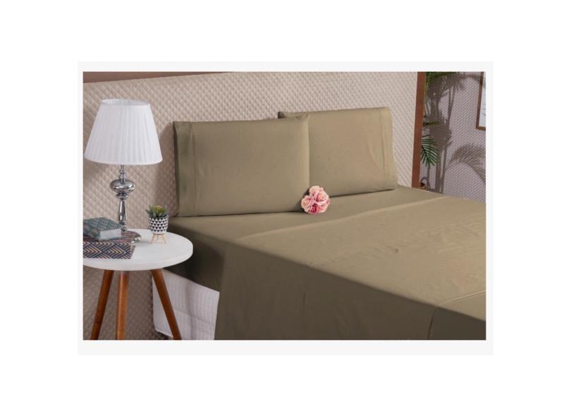 Jogo de lençol 4 peças queen cáqui ponto palito algodão