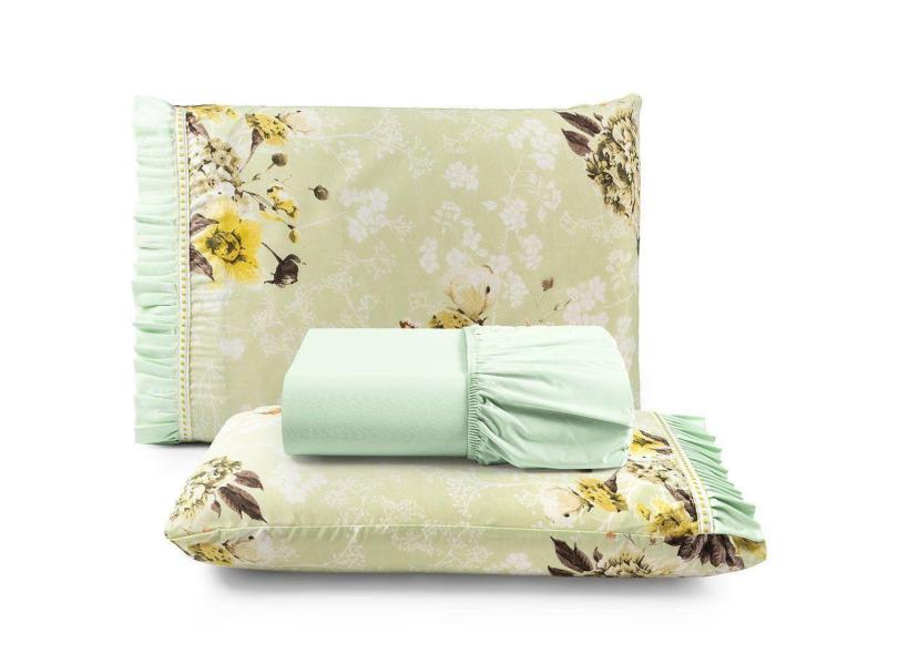 O menor preço encontrado no Brasil para Jogo De Lençol Afrodite Casal 3 Pçs Algodão 180 Fios Estampa Floral - Verde atualmente é R$ 94,48.