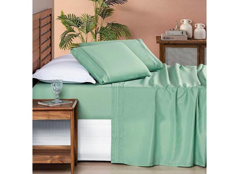 Jogo de Lençol Aria Casal 4 Peças Micropercal 200 Fios Suave Detalhe Bordado - Salvia Verde