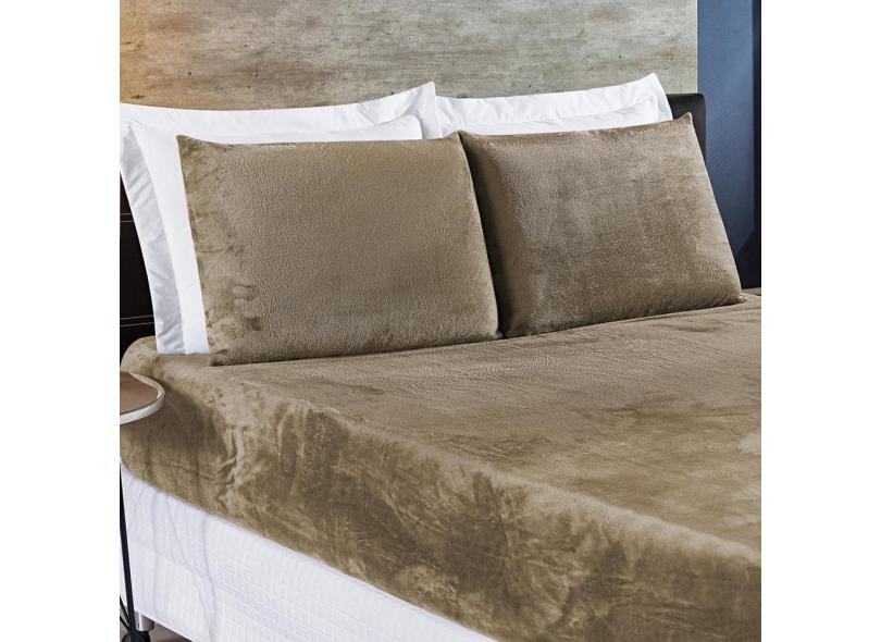 Jogo De Lençol Biasoft Casal 3 Peça Manta Flanel Macia Cáqui