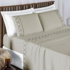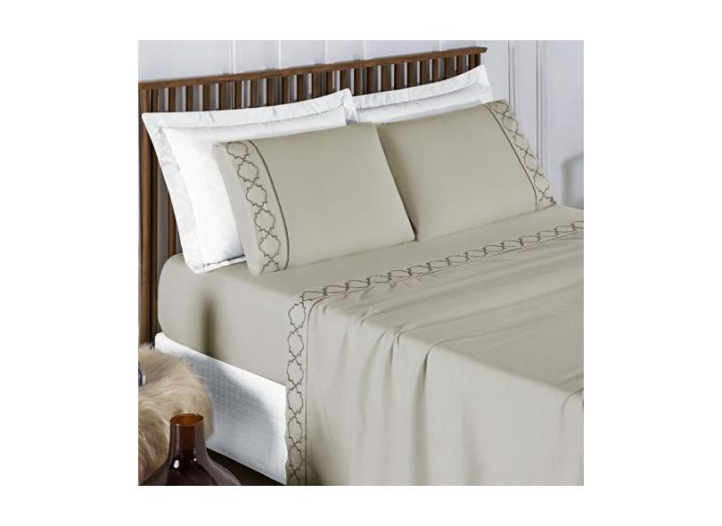 Jogo de Lençol Bordado Titanium King 4 Peças Barato - Cáqui - Casa Sho
