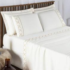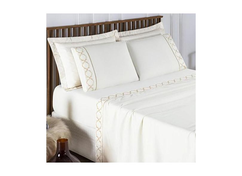 Jogo De Lençol Bordado Titanium King 4 Peças Barato - Palha - Casa Sho