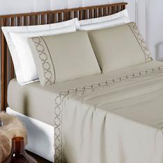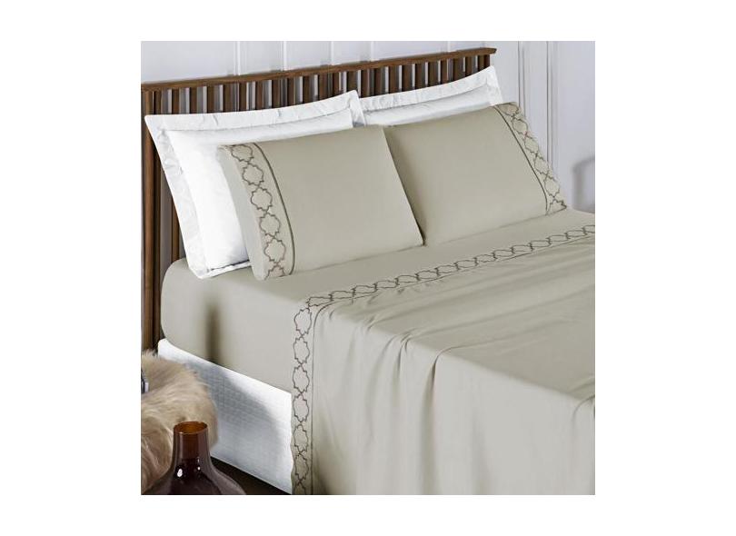 Jogo De Lençol Bordado Titanium Queen 4 Peças Barato - Cáqui - Casa Sh