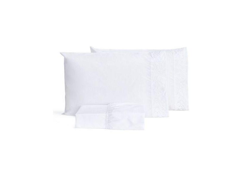 O menor preço encontrado no Brasil para Jogo De Lençol Branco Casal Box Bordado Percal Puro Algodão - Lu Enxov atualmente é R$ 123,54.