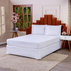Jogo De Lençol Branco Casal Box Bordado Percal Puro Algodão - Lu Enxov