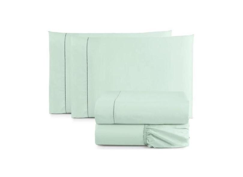 O menor preço encontrado no Brasil para Jogo De Lençol Cama Casal 4 Peças Percal 400 Fios Verde Água - Casa Ho atualmente é R$ 128,35.