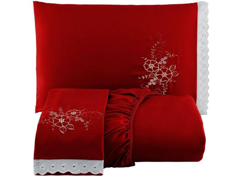 Jogo de Lençol Cama Queen 3 Peças com Elástico Bordado