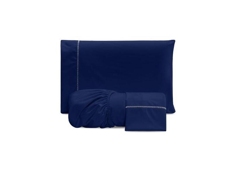 O menor preço encontrado no Brasil para Jogo De Lençol Casal 3 Peças 300 Fios Azul Marinho - Sofisticada Moda atualmente é R$ 72,18.