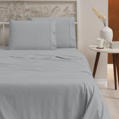 Jogo De Lençol Casal 4 Peças 100% Algodão 200 Fios Cinza - Casa Fernan