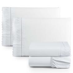 Jogo De Lençol Casal 4 Peças Basic Percal 180 Fios Lese Bordado Inglês - Branco