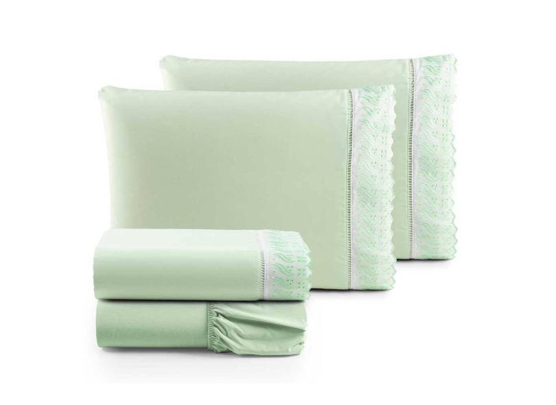 O menor preço encontrado no Brasil para Jogo De Lençol Casal 4 Peças Basic Percal 180 Fios Lese Bordado Inglês - Verde atualmente é R$ 169,90.