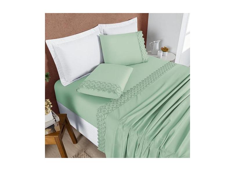 Jogo De Lençol Casal 4 Peças Nobless Bordado Verde Salvia - Enxoval Vi