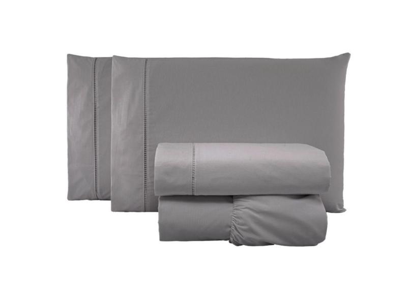 Jogo de Lençol Casal Algodão Percal 200 Fios 4 Peças - Cinza