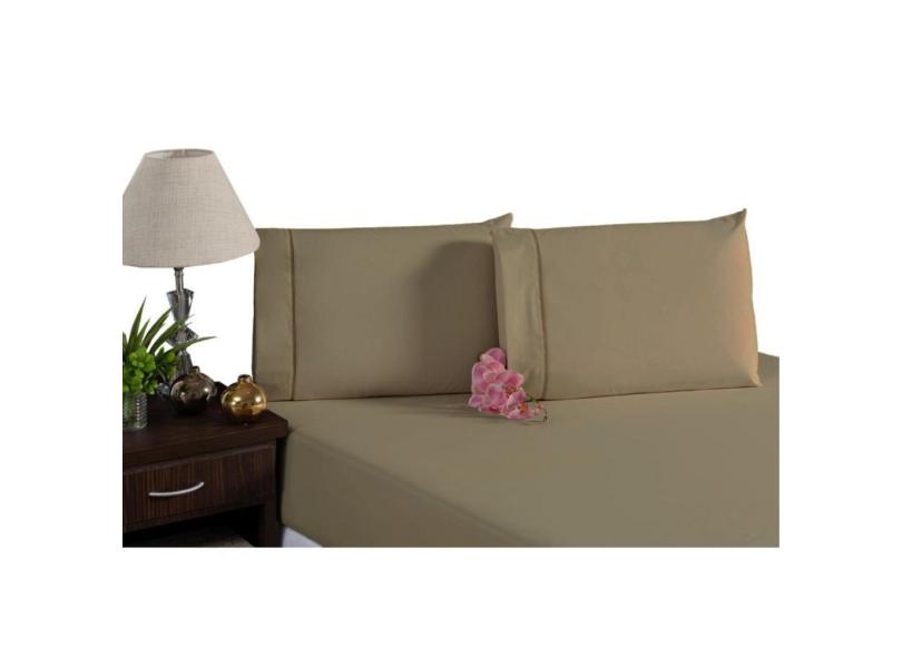 Jogo de lençol casal king 400 fios 100% poliéster ponto palito caqui