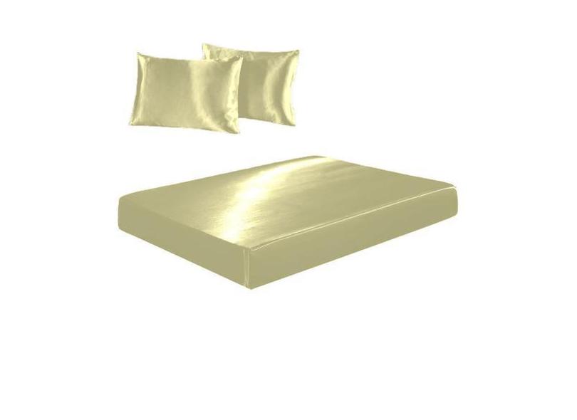 Jogo De Lençol Casal King Cetim Seda Bege Brilho 3 Peças - Confecções