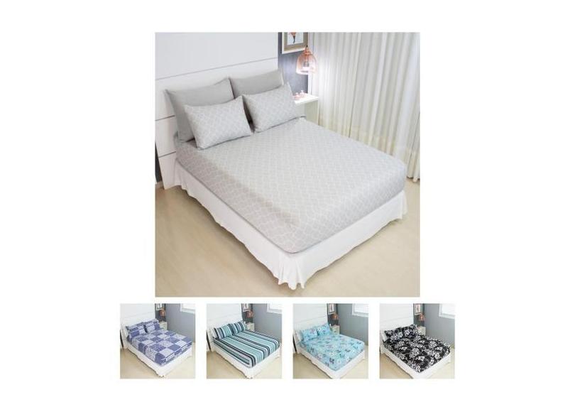 Jogo De Lençol Casal Malha 100% Algodão 3 Peças Estampado - Cozzilar