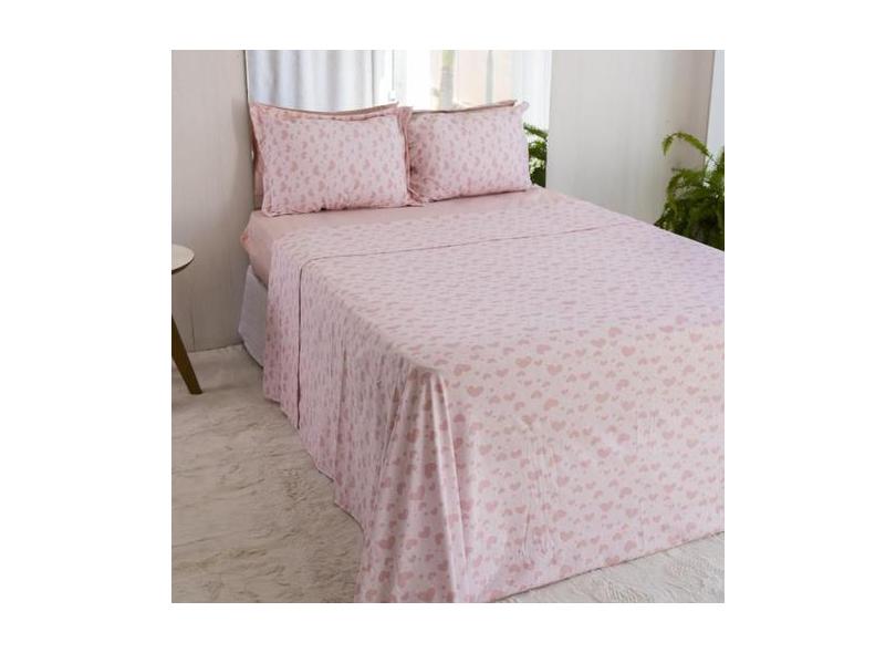 Jogo de Lençol Casal Malha 4 Peças com Elástico Estampado - Bella Enxo