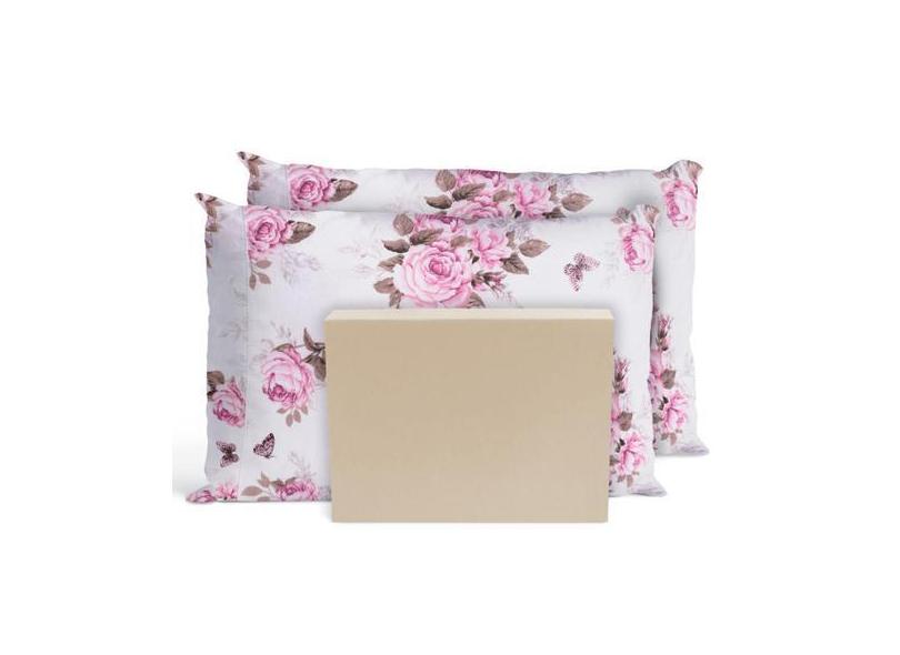 Jogo De Lençol Casal Padrão 3 Peças 200 Fios Rosas Palha - Casa Home
