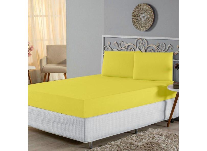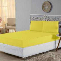 Jogo De Lençol Casal Padrão Malha 100% Algodão 3 Peças Cor Amarelo