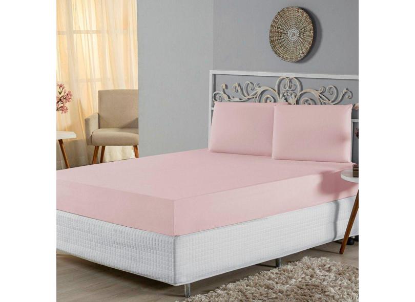 Jogo De Lençol Casal Padrão Malha 100% Algodão 3 Peças Cor Rosa