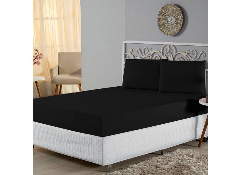 Jogo de Lençol Casal Padrão Malha 100% Algodão 3 Peças - Preto