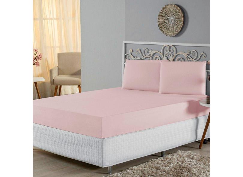 Jogo de Lençol Casal Padrão Malha 100% Algodão 3 Peças - Rosa