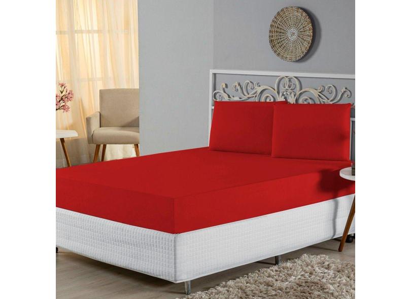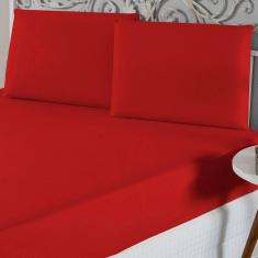 Jogo de Lençol Casal Padrão Malha 100% Algodão 3 Peças - Vermelho