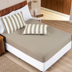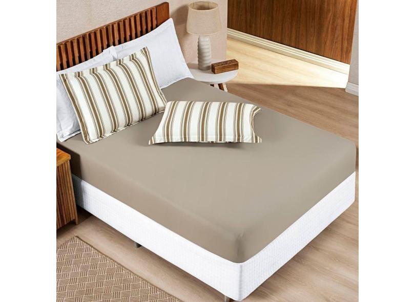 Jogo De Lençol Casal Padrão Marim Malha 100% Algodão 3 Peças Caqui