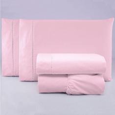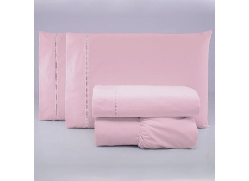 Jogo de Lençol Casal Percal 200 Fios 4 Peças - Rosa