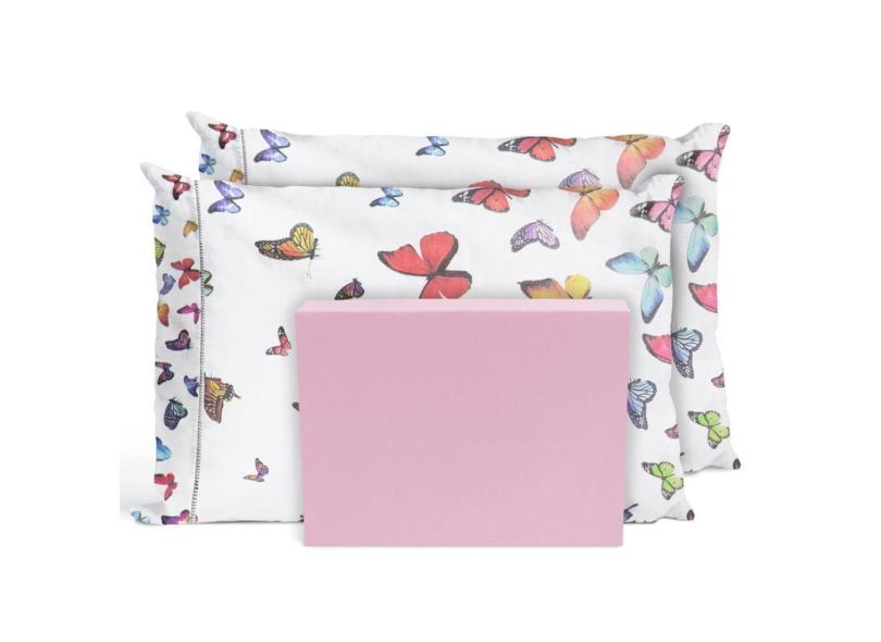 O menor preço encontrado no Brasil para Jogo De Lençol Casal Queen 3 Peças 200 Fios Borboletas Rosa atualmente é R$ 117,78.