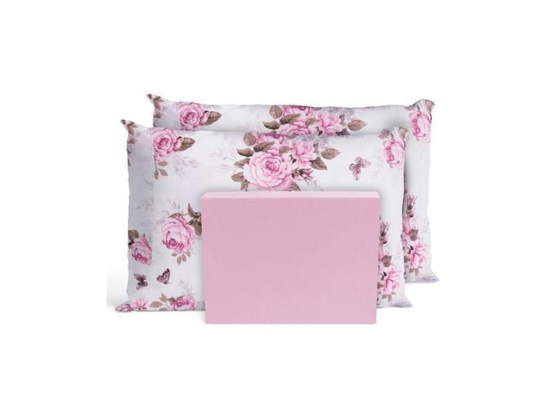 Jogo De Lençol Casal Queen Box 3 Peças 200 Fios Rosas Rosas - Casa Hom