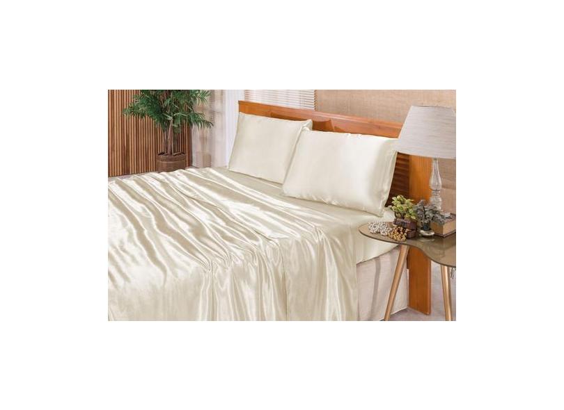 Jogo De Lençol Casal Queen Cetim Seda Pérola 4 Peças - Confecções Elba