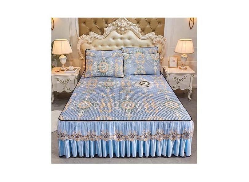 Jogo de lençol casal refrescante, super macio, refrescante, de nylon, liocel, para dormir quente, respirável, lençol com elástico e 2 fronhas (azul, 7
