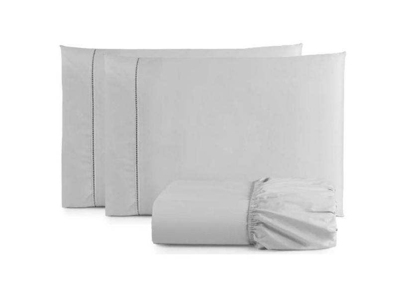 Jogo de Lençol Casal Size 3 Peças Percal 400 Fios Toque Macio Cinza