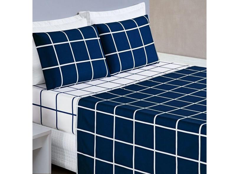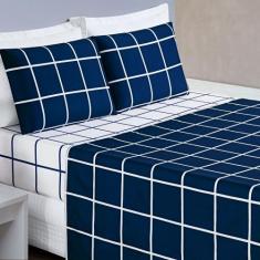 Jogo De Lençol Casal Square 4 Peças Azul Marinho