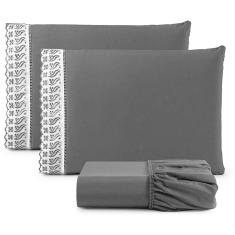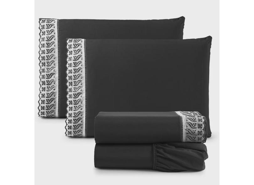O menor preço encontrado no Brasil para Jogo de Lençol Casal Suave Barrado Lese 3 Peças Barato - Preto atualmente é R$ 80,82.