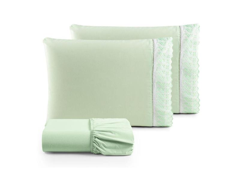O menor preço encontrado no Brasil para Jogo De Lençol Casal Suave Barrado Lese 3 Peças Barato - Verde atualmente é R$ 80,82.