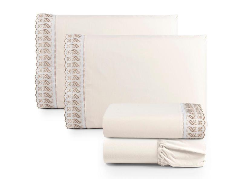 Jogo De Lençol Casal Suave Barrado Lese 4 Peças Barato - Palha